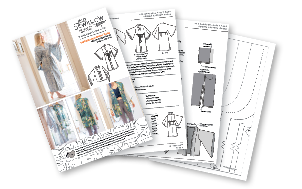 Make a short or long robe with angel or wide bell style sleeves, and the option to add hidden pockets as well as a braided belt. Instructions are given for adding belt loops, as well as a coat loop to hang your robe on a hook. Sew in a lightweight fabric for summer, or a medium weight jersey fabric to make a warmer winter robe. Sewn in a bold print, these robes can easily be made as a daytime duster to wear over yoga leggings or jeans.