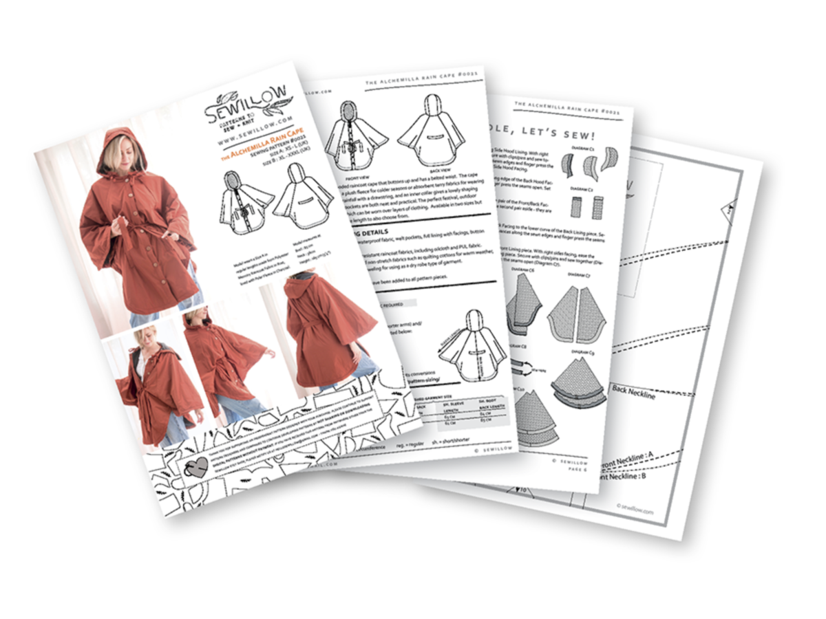 An intermediate sewing pattern to make a fully lined hooded raincoat cape